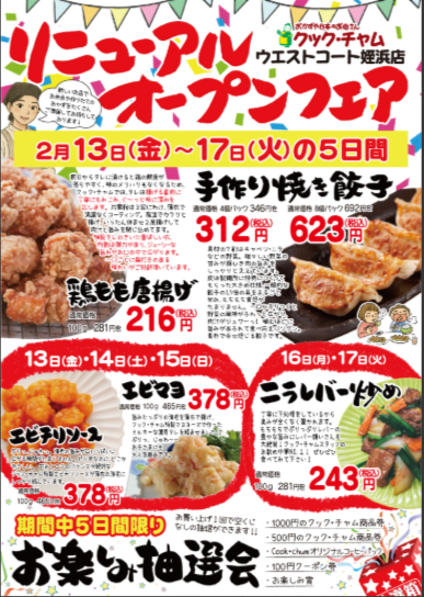 2月13日(金)~17日(火)の5日間、ウエストコート姪浜店ではリニューアルオープンを記念し、フェアを開催いたします!